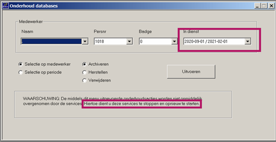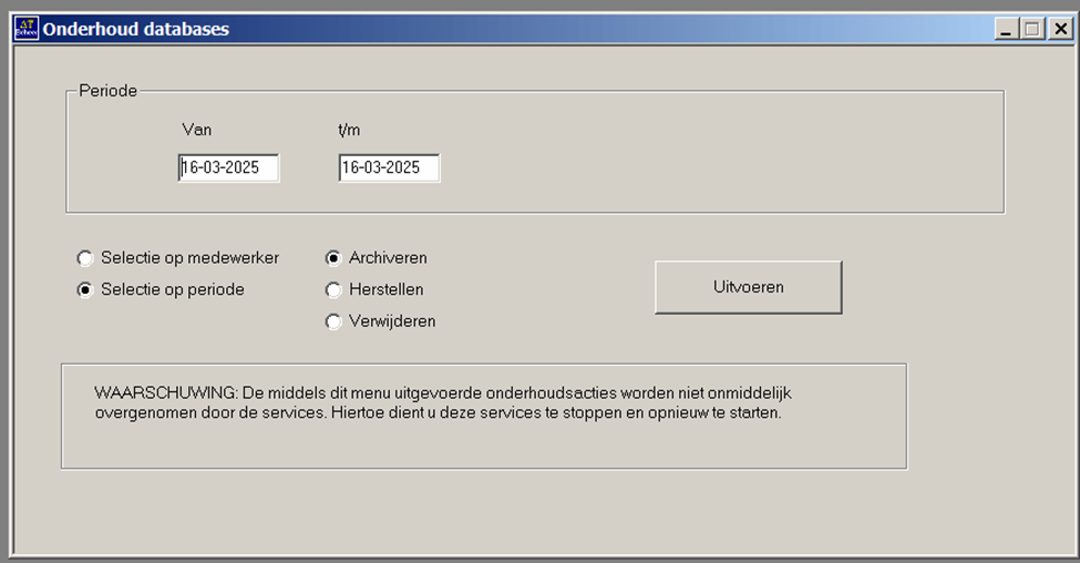 Om de medewerkers binnen Atrea zo overzichtelijk mogelijk te houden en er voor te zorgen dat het systeem goed blijft werken adviseren wij om medewerkers die uit dienst zijn in Atrea regelmatig te archiveren. De voorwaarden voor deze actie zou moeten zijn
