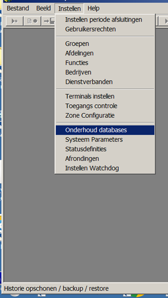 Ga via het menu-item 'Instellen' naar het submenu 'Onderhoud databases'